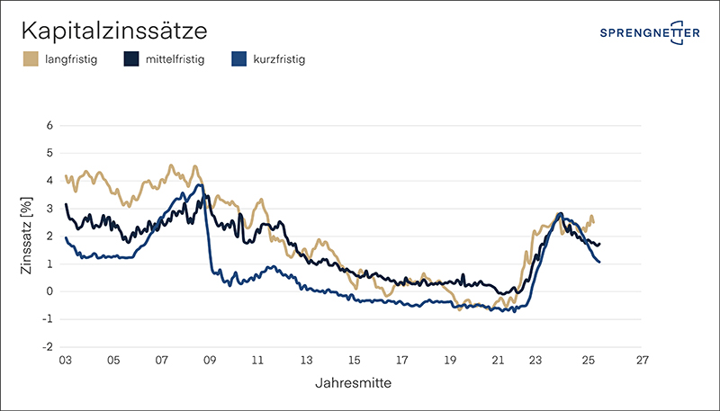 Die kompletten Zeitreihe Kapitalzinssätze sowie der Zinssätze für Wohnungsbaukredite finden Sie in Sprengnetters Loseblattsammlung Immobilienbewertung – Marktdaten und Praxishilfen bzw. in Sprengnetter Books in Kapitel 4.09.