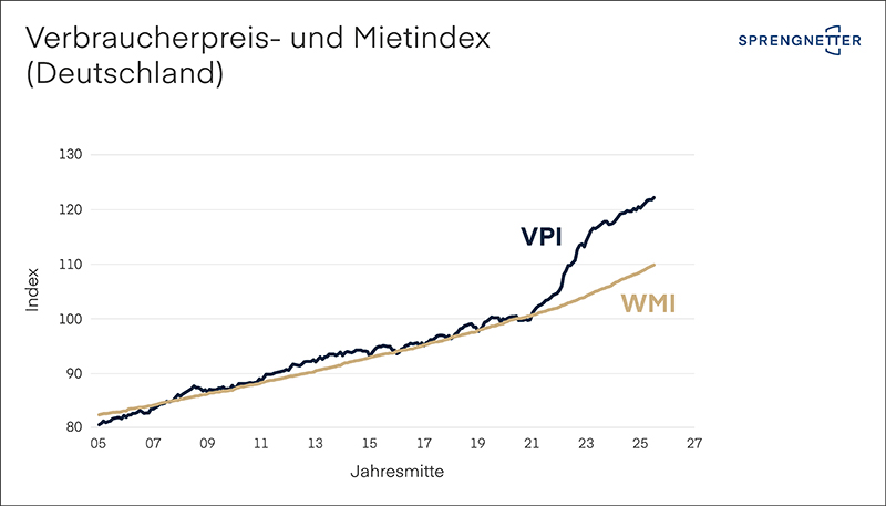 Die komplette Zeitreihe der Verbraucherpreisindizes sowie die Zeitreihe zu den Preisindizes für Wohnungsmieten in Deutschland finden Sie in der Sprengnetter Loseblattsammlung Immobilienbewertung – Marktdaten und Praxishilfen bzw. in Sprengnetter Books in Kapitel 4.02.