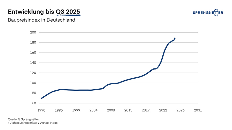 Der Baupreisindex für Wohngebäude (Neubau konventionell gefertigter Wohngebäude in Deutschland) ist nach Mitteilung des statistischen Bundesamtes im August 2025 um 3,1 % gegenüber dem Vorjahreswert gestiegen. Im Vergleich zum Mai 2025 erhöhten sich die Baupreise um 0,5 %.