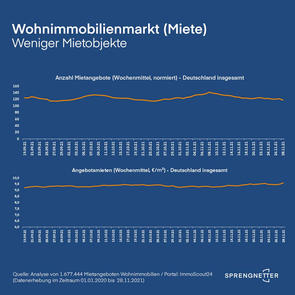 Sprengnetter liest seit Beginn der Corona-Krise regelmäßig die Angebotszahlen des deutschen Wohnimmobilienmarktes aus. Für diese Analyse wurden 1.677.444 Mietobjekte und 1.060.103 Kaufobjekte betrachtet.