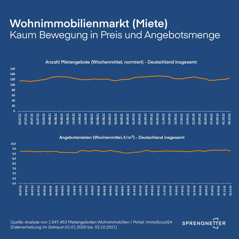 Sprengnetter liest seit Beginn der Corona-Krise regelmäßig die Angebotszahlen des deutschen Wohnimmobilienmarktes aus. Für diese Analyse wurden 1.547.453 Mietobjekte und 977.371 Kaufobjekte betrachtet.